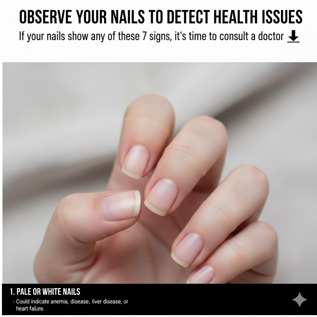 Observe Your Nails to Detect Health IssuesBy Itmemes / Leave a Comment 🩺 Observe Your Nails to Detect Health IssuesIf your nails show any of these 7 signs, it’s time to consult a doctor 👇 1. Pale or White Nails – Could indicate anemia, liver disease, or heart failure. Next Pages: 1 2 3 4 5 6 7