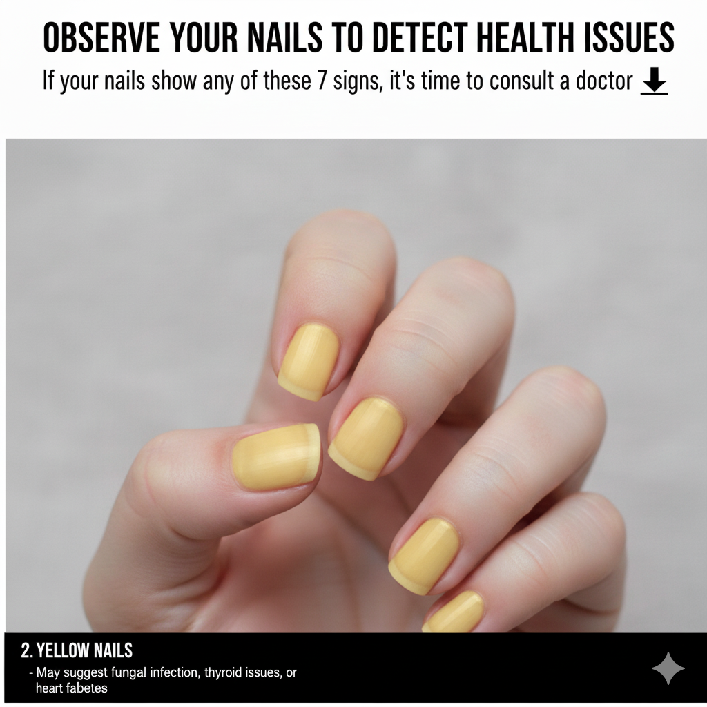 Observe Your Nails to Detect Health IssuesBy Itmemes / Leave a Comment 2. Yellow Nails – May suggest fungal infection, thyroid issues, or diabetes. Next Pages: 1 2 3 4 5 6 7