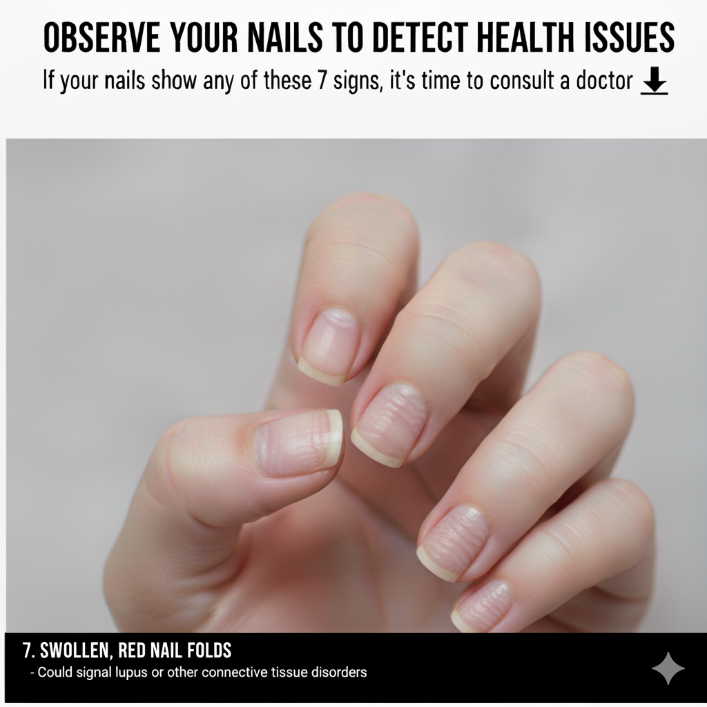Observe Your Nails to Detect Health IssuesBy Itmemes / Leave a Comment 7. Swollen, Red Nail Folds – Could signal lupus or other connective tissue disorders. Pages: 1 2 3 4 5 6 7